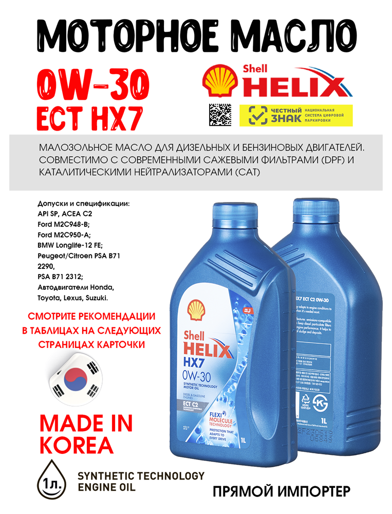 Моторное масло Shell Helix HX7 ECT C2 помогает обеспечивать чистоту двигателя и его эффективную работу, предотвращая образование загрязнений и отложений на поверхностях деталей двигателя. За счет низкого коэффициента трения масло Shell Helix HX7 ECT C2 обеспечивает дополнительную экономию топлива.