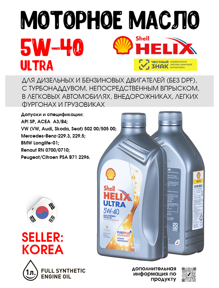Полностью синтетическое моторное масло — самая передовая формула Shell для высокопроизводительных двигателей.