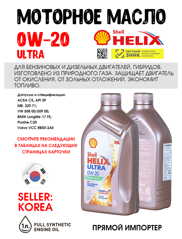 Полностью синтетическое моторное масло Shell Helix Ultra обеспечивает максимальную защиту двигателя при самых высоких и самых низких температурах окружающей среды, а также при крайне тяжелых дорожных условиях. Использование улучшенной технологии "Шелл", совместимой с системами очистки от выхлопных газов, помогает очистить катализаторы бензиновых двигателей и сохранить чистоту сажевых фильтров дизельных двигателей, а также защитить их