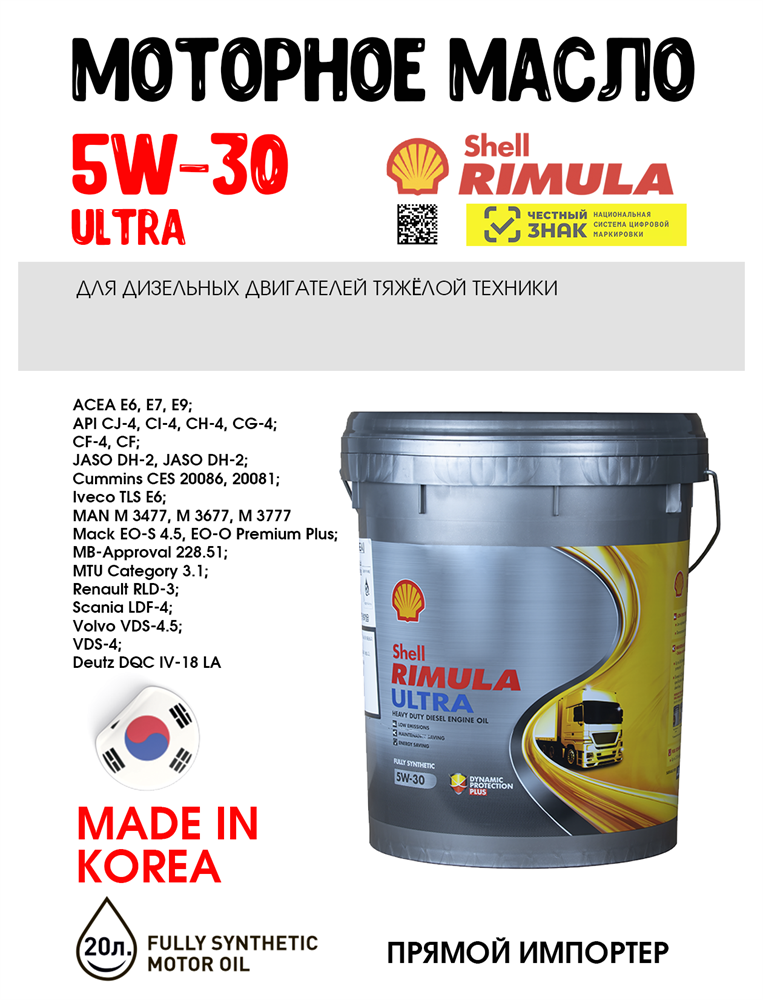 Shell Rimula Ultra разработано с использованием инновационной технологии Shell Dynamic Protection Plus, которая представляет собой сочетание самой передовой адаптивной системы Shell и ее синтетического базового масла Gas-to-Liquid, которое производится в процессе, преобразующем природный газ в кристально чистый продукт. Dynamic Protection Plus обеспечивает исключительную защиту двигателя: